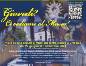 Anche “Giovedì? Ci vediamo al museo!” sarà un appuntamento fisso dell’astate, l’ultima data  sarà giovedì 5 settembre 2024 e darà la possibilità di visitare, a rotazione, il Museo Diocesano, il Museo Civico a S. Francesco fuori le mura, il Museo di Zoologia Adriatica “G. Olivi” a Palazzo Grassi, la storica collezione dei padri Filippini allestita nella parte superiore della chiesa dietro la cantoria, la SS. Trinità, l’antica Torre di Sant’Andrea e il suo famoso orologio realizzato da Dondi nel Trecento, le raccolte naturalistiche del Circolo Linneo a Palazzo Ravagnan.